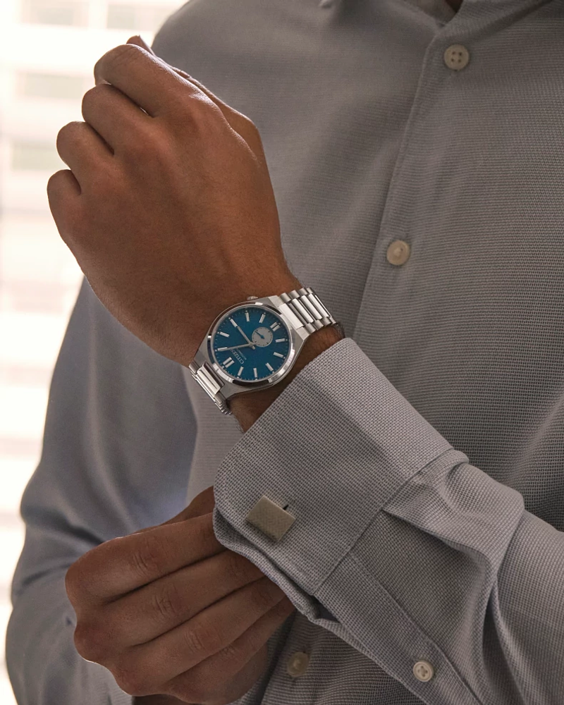 The Citizen Automatics TSUYOSA Small Second - NK5010-51L combines contemporary design with everyday versatility. Crafted in a 40mm stainless steel case with a recessed crown at 4 o’clock, this watch boasts a sleek and modern silhouette. Its textured blue dial, highlighted by a small seconds counter at 6 o’clock and silver-tone markers, creates a striking visual appeal beneath the anti-reflective sapphire crystal. Powered by the Calibre 8322 automatic movement with an impressive 60-hour power reserve, this timepiece ensures dependable performance. With 50m water resistance, the Tsuyosa Small Second is designed for both professional and casual wear—making it a perfect daily companion.