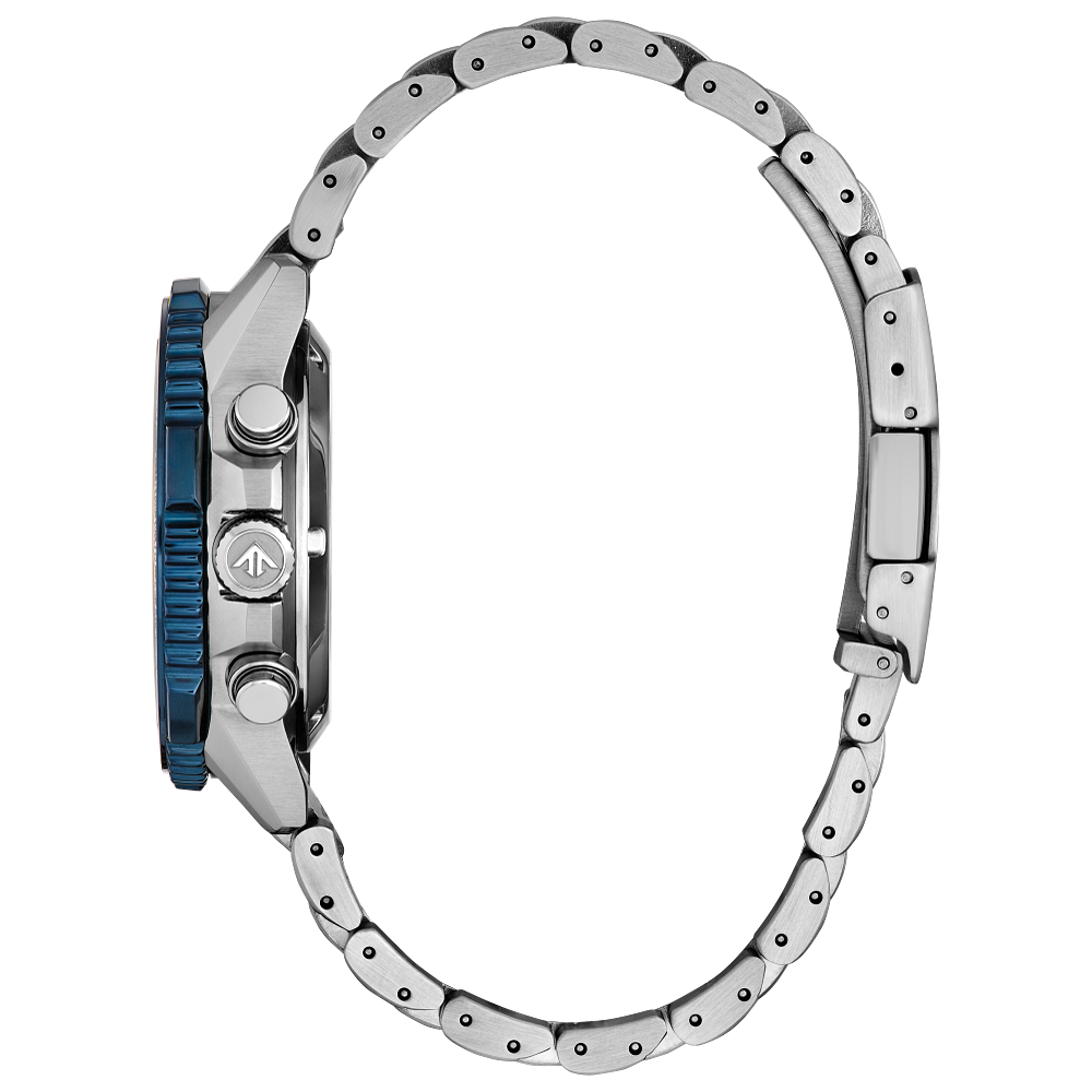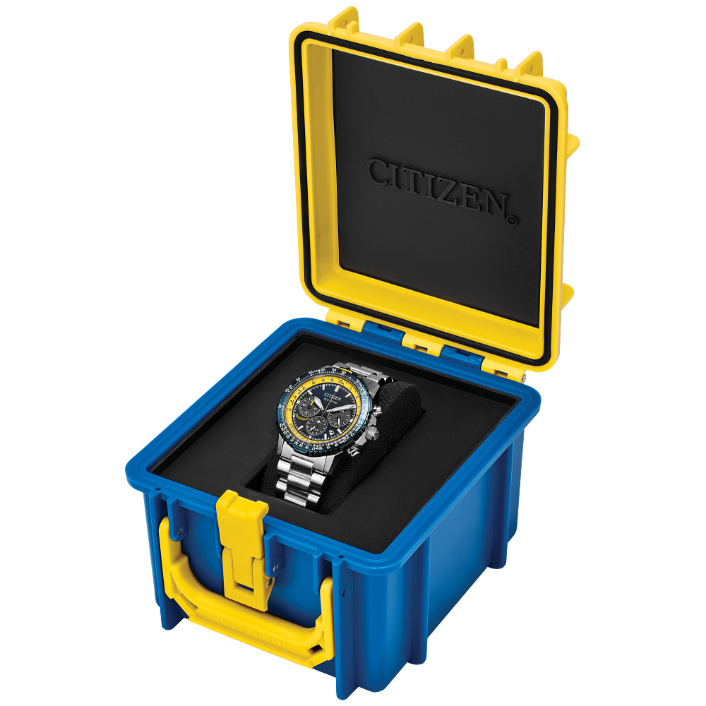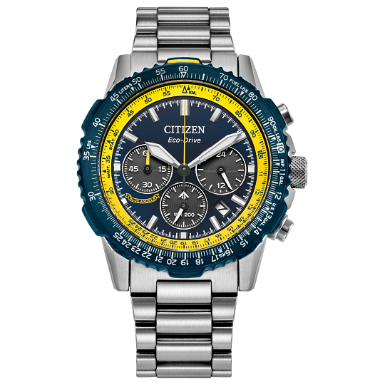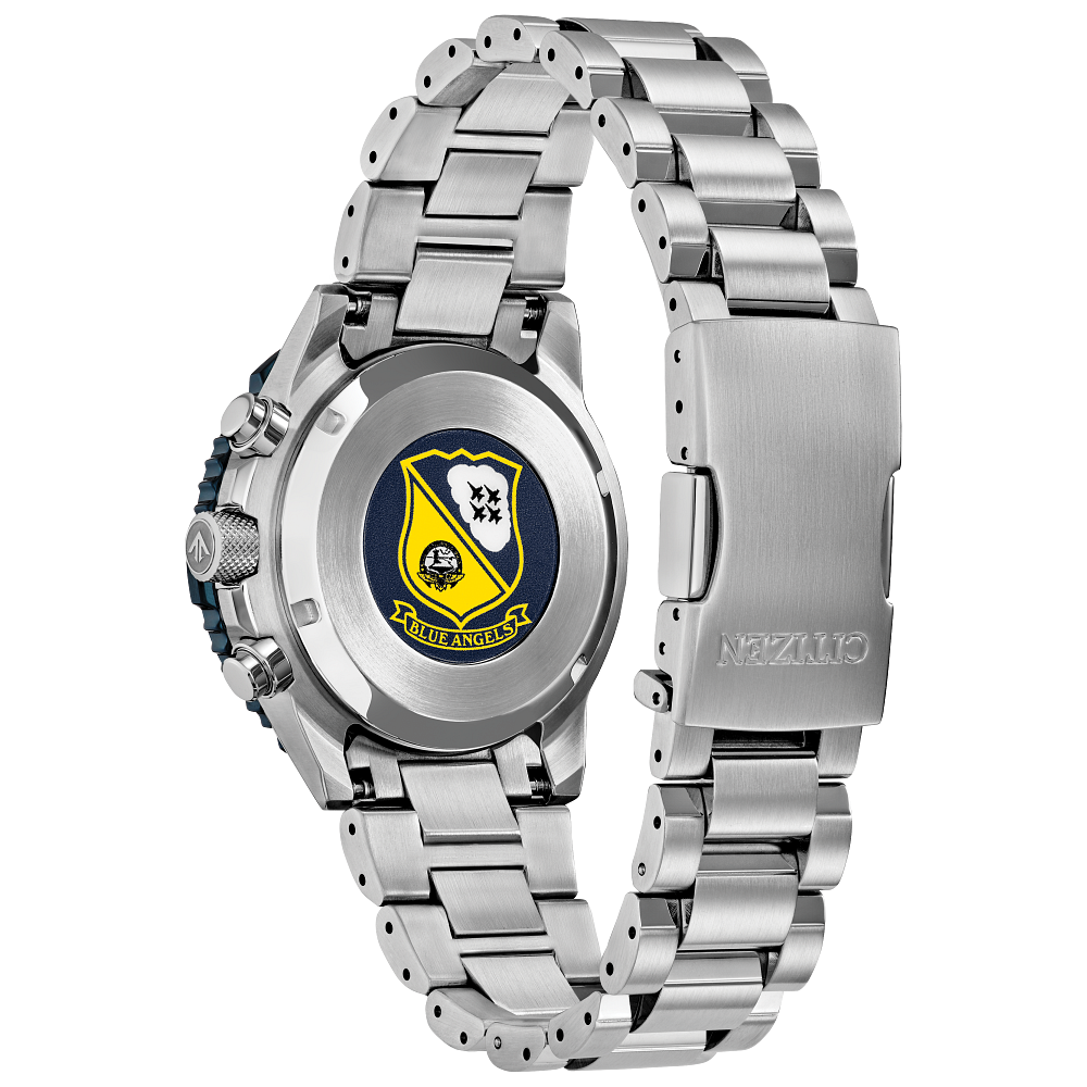 The Citizen Blue Angels Promaster Air Navihawk brings elite precision to the wrist. Featuring a 40mm silver-tone stainless steel case, blue ion-plated slide-rule bezel, and triple-link bracelet, it delivers bold aviation style. The Blue Angels dial offers superior legibility, protected by sapphire crystal and 200m water resistance. Powered by light with Citizen’s Eco-Drive technology, it includes a 1/5-second chronograph, 12/24-hour time, date display, and Blue Angels insignia case back. Calibre B620.