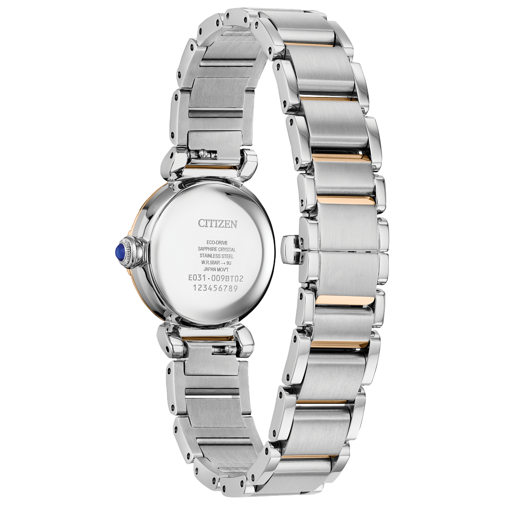 Classic elegance meets sustainable innovation with the Citizen Eco L Mae - EM1136-87D, a sophisticated timepiece designed to capture the essence of feminine beauty and timeless charm. Inspired by vintage perfume bottles, this exquisite watch reflects refined artistry and modern luxury.