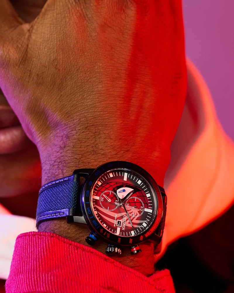 Powered by Citizen’s Eco-Drive technology, this watch runs on any light and never requires a battery — responsible, efficient, and always ready for action, just like Spider-Man.