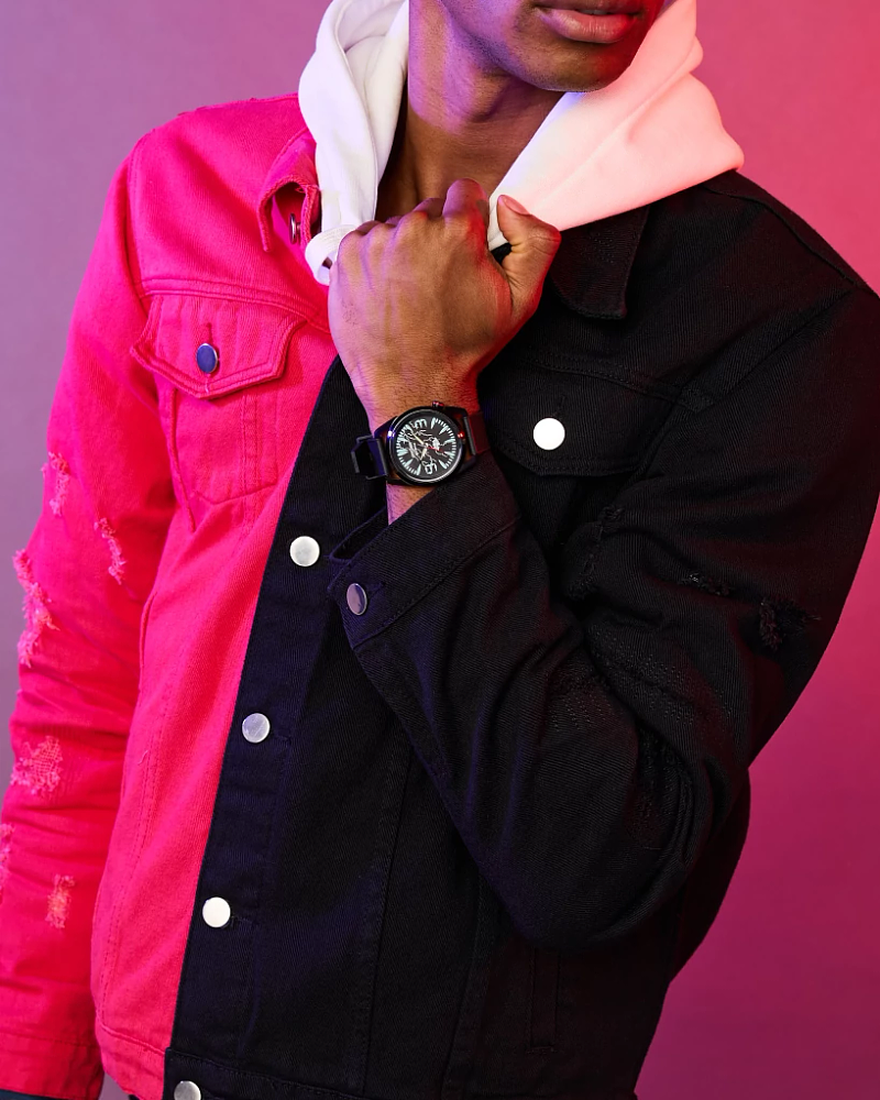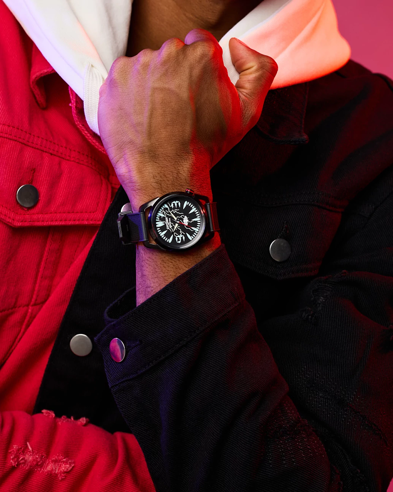 Spider-Man’s nemesis has main-character energy in the all-new boxed set devoted to Venom, the alien symbiote with a shape-shifting, liquid-like form and an equally fluid personality. The deep black dial features Venom’s signature teeth in the form of luminous markers along with his own spider symbol, an alternative design of his hosts Peter Parker’s logo, finished by ink-jet lightning. The 42mm black IP stainless steel case and textured polyurethane strap contrast the red second hand and crown at the 4 o’clock position. The case back is etched with his likeness, and the set is completed by a collectible coin that features Spider-Man on one side and his arch-enemy on the other: Super Hero and Anti-Hero. Contrary to Venom’s dark side, this watch is powered by any light with Eco-Drive technology and never needs a battery.