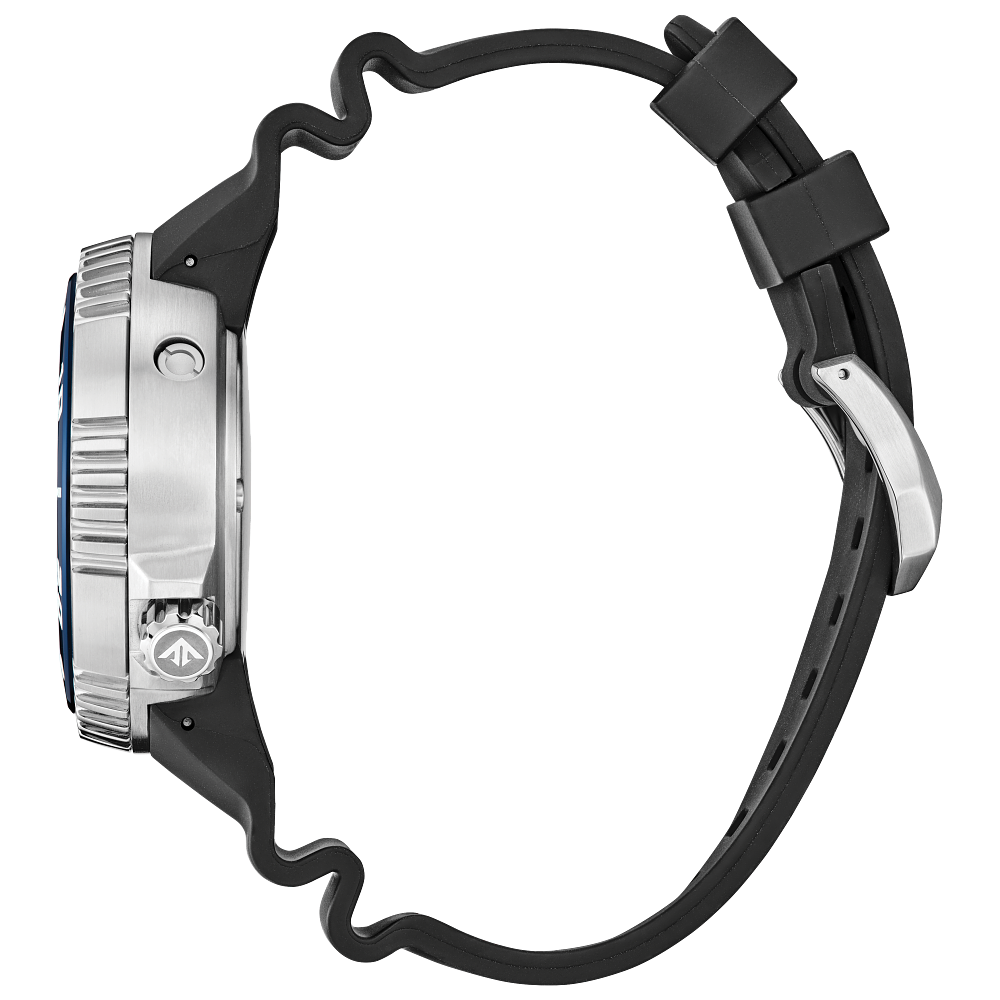 ✅ Professional Diver Build – Robust 46mm silver-tone stainless steel case, black easy-grip unidirectional bezel, and 4 o’clock screw-down crown.