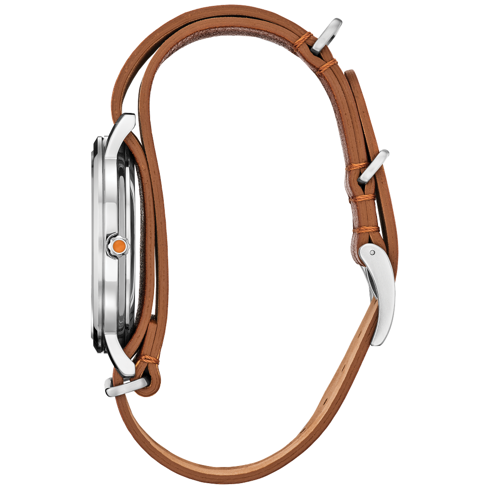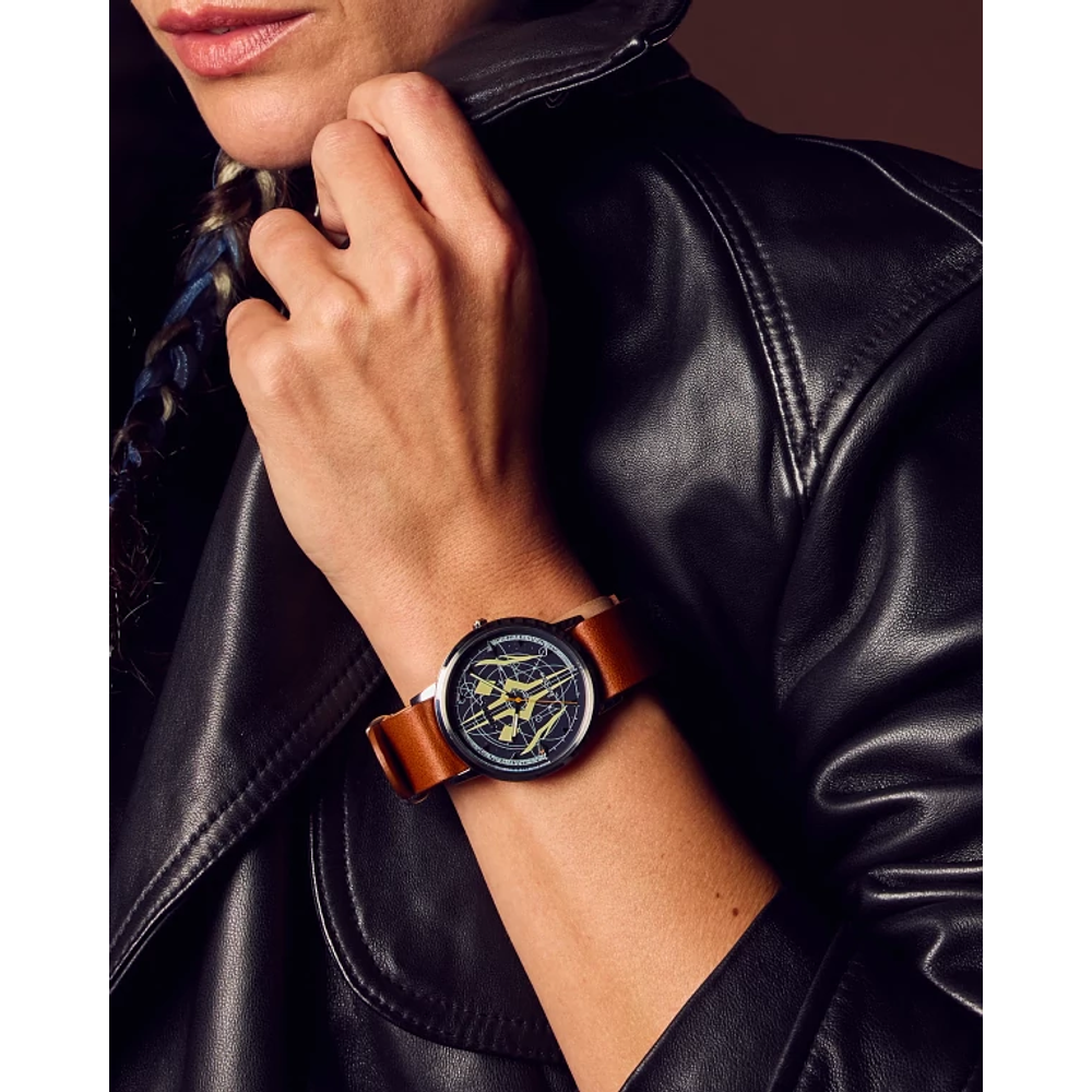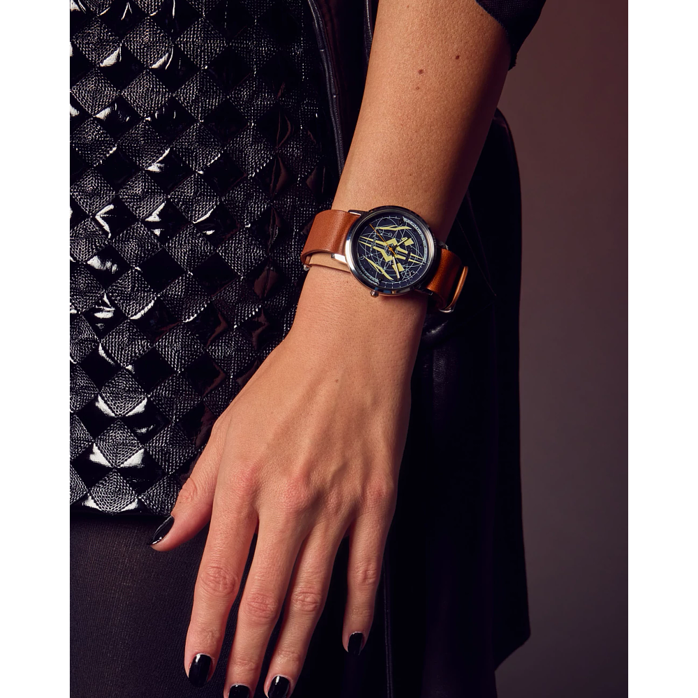 Step into the galaxy with the Star Wars - BJ6508-02W, a timepiece inspired by the fearless Ahsoka Tano, Anakin Skywalker’s former Jedi apprentice. Designed to honor her strength and resilience, this unisex 40.5mm stainless steel watch features a bold blue dial adorned with luminous abstract patterns and her signature face markings. Raised diamond-shaped markers reflect elements from her iconic headdress, while the case back is etched with her distinctive likeness. The rugged brown calf leather strap with a sport buckle adds a battle-ready finish. Powered by Citizen’s Eco-Drive technology, the Star Wars - BJ6508-02W runs on light and never needs a battery—just like the enduring energy of the Star Wars™ legacy.