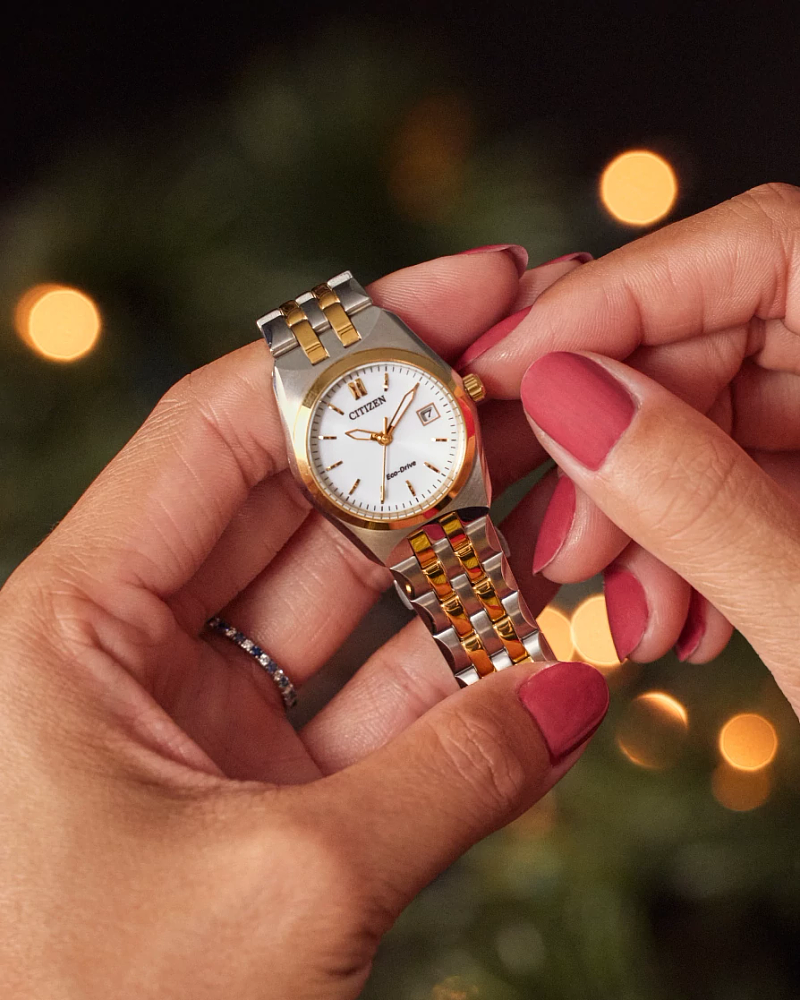 Powered by Citizen’s proprietary Eco-Drive technology, the Corso runs continuously on light—natural or artificial—eliminating the need for a battery. With 100-metre water resistance and Caliber E011, this elegant timepiece offers durability and sustainability in perfect harmony.