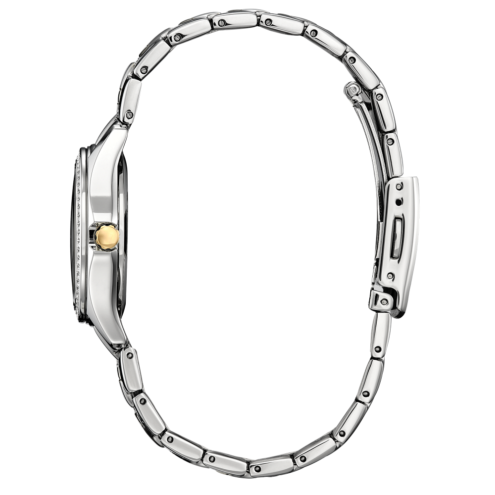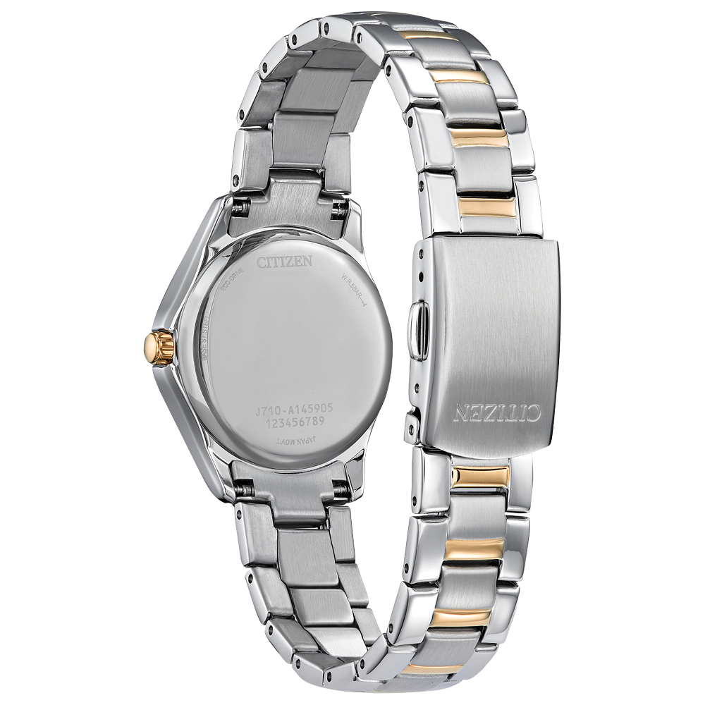 Powered by Citizen’s innovative Eco-Drive technology, this watch runs on any light—natural or artificial—eliminating the need for battery replacements. A perfect blend of beauty, sustainability, and function, it transitions seamlessly from daywear elegance to evening sophistication.