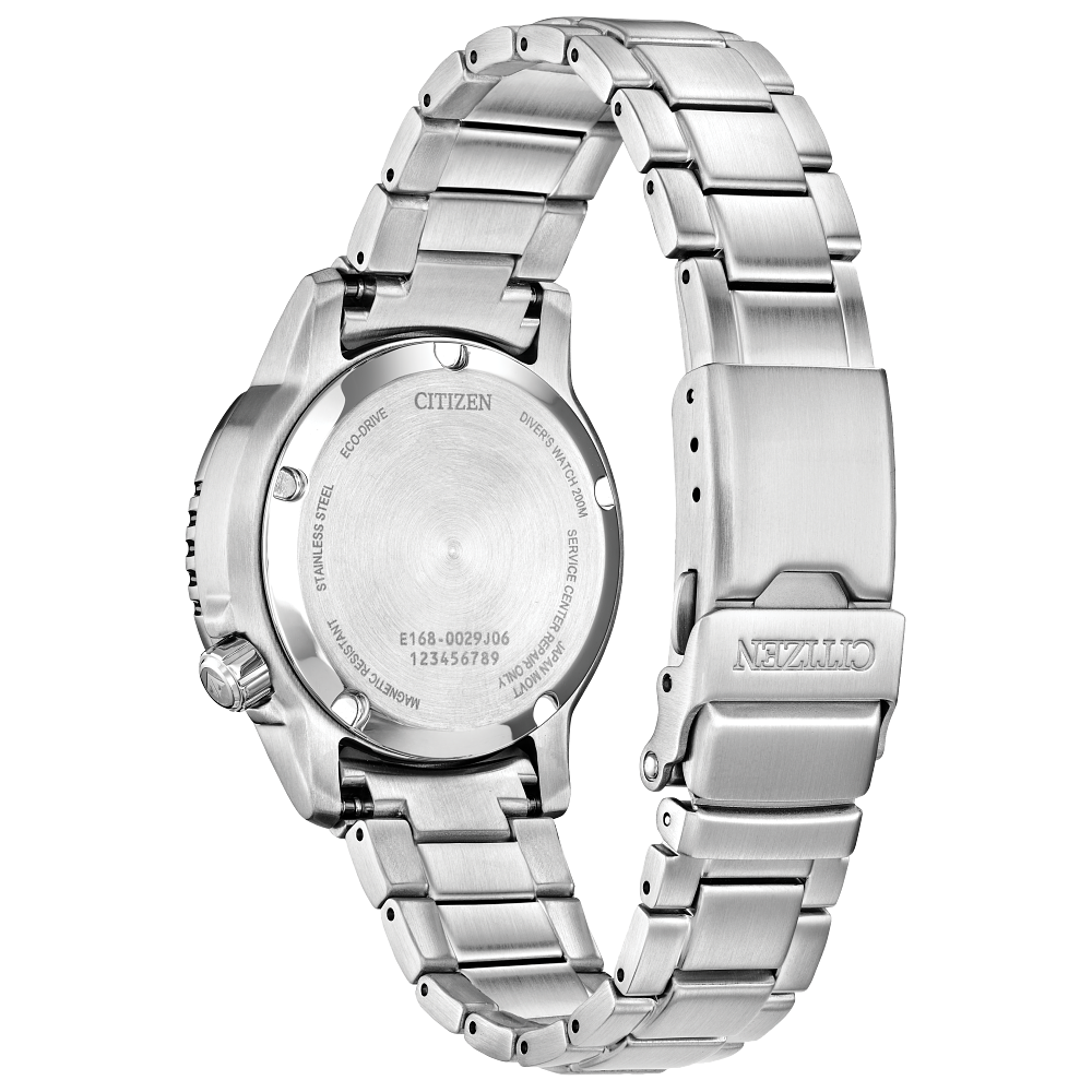 Dive into performance and style with the Citizen Promaster 37mm Dive Watch, a professional-grade timepiece designed for adventurers and everyday wear. Featuring a durable silver-tone stainless steel case and matching bracelet, this watch offers a secure, comfortable fit for all wrists.