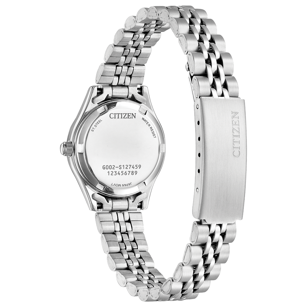 The Citizen Quartz - EQ0530-51N is an elegant women’s timepiece designed to complement every outfit with timeless sophistication. Featuring a stainless steel case and bracelet, this watch is elevated by a stunning white mother-of-pearl dial and crystal-accented bezel for a touch of sparkle.