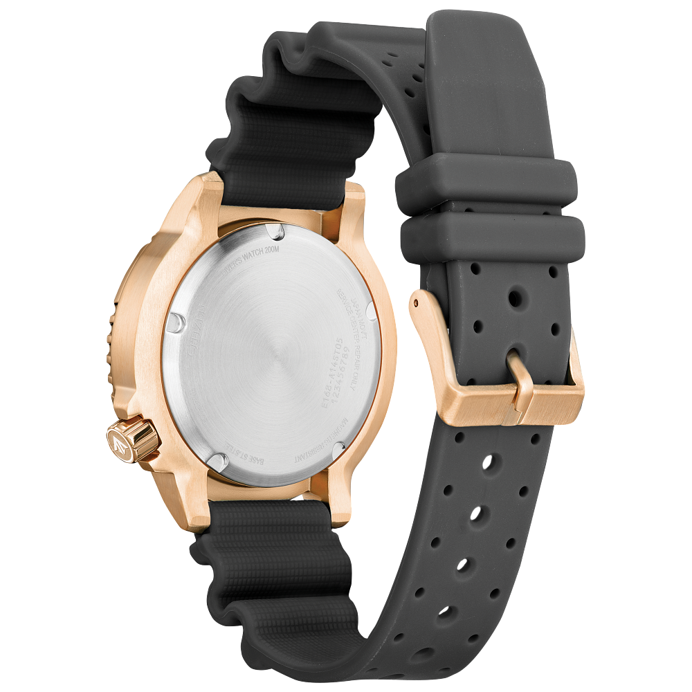 Dive into adventure with the CITIZEN® Promaster Diver in a sleek new rose gold-tone design. Built for style, durability, and professional performance, this ISO-compliant diver’s watch is ready for both the ocean depths and everyday wear.