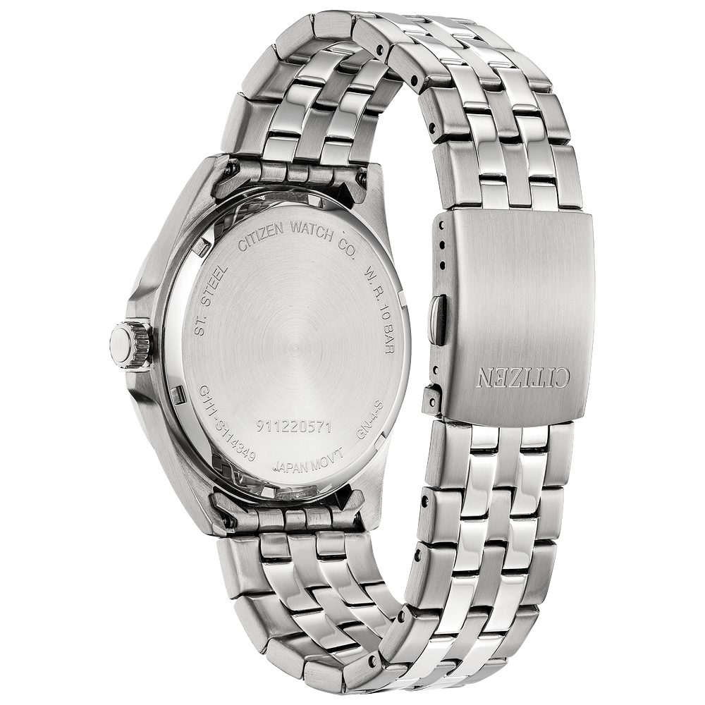Make a bold statement with the Citizen Quartz - BI5050-54E, a modern stainless steel men’s watch designed to combine classic elegance with standout details. The silver-tone case with sleek black enamel accents sets this timepiece apart, while the matching stainless steel bracelet offers both strength and style.