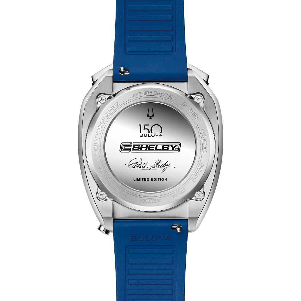 Celebrate Bulova’s 150th Anniversary with this limited-edition Shelby Racing Chronograph, inspired by Carroll Shelby’s iconic 1967 Mustang GT500. Featuring a bold bullhead case, Precisionist 1/1000-second chronograph, and signature Shelby blue-and-white styling, it’s a collector’s timepiece limited to just 7,500 pieces.